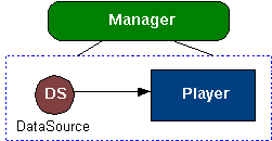 通常在多媒体的处理过程中有两个重要的环节,一是处理数据传输的协议另一个是处理媒体的数据类型。在MMAPI中提供了DataSource和Player 来完成这两步重要的内容。DataSource对数据传输协议进行封装不管它是从哪里过来的,可以是流、文件或者服务器资源等等。Player则负责解码工作,并传输给外设比如显示屏和扬声器,MMAPI的入口点是Manager类,通过它我们可以得到Player的实例。请看下图: